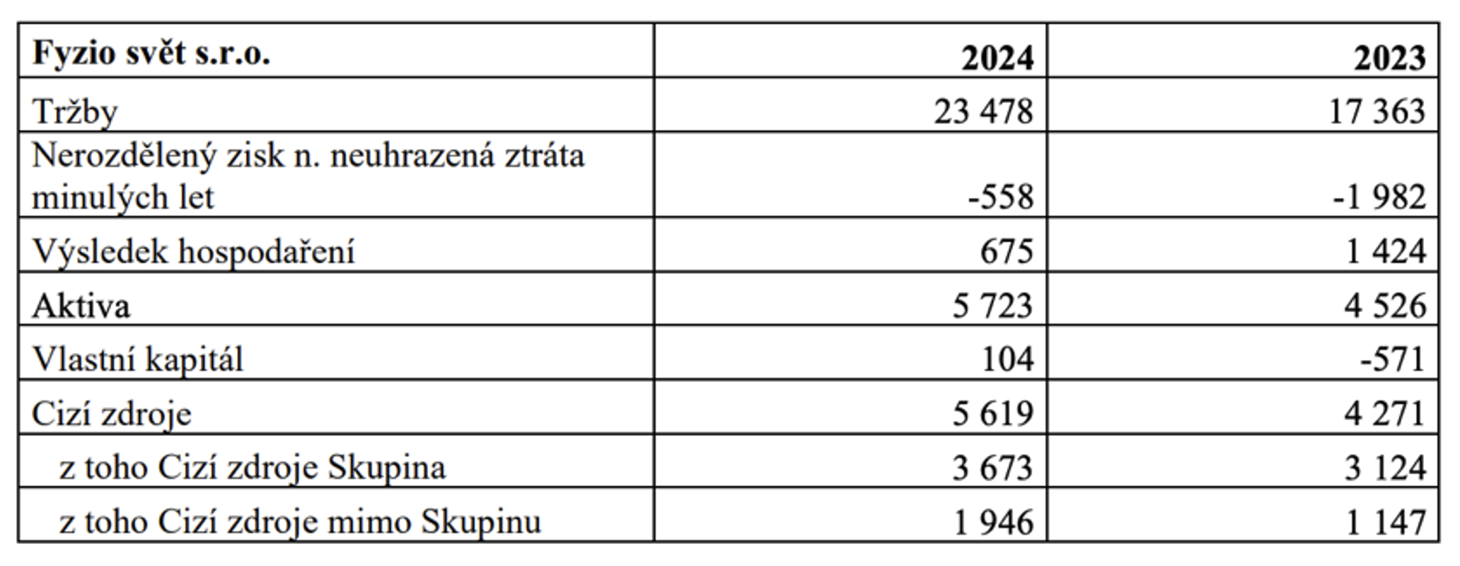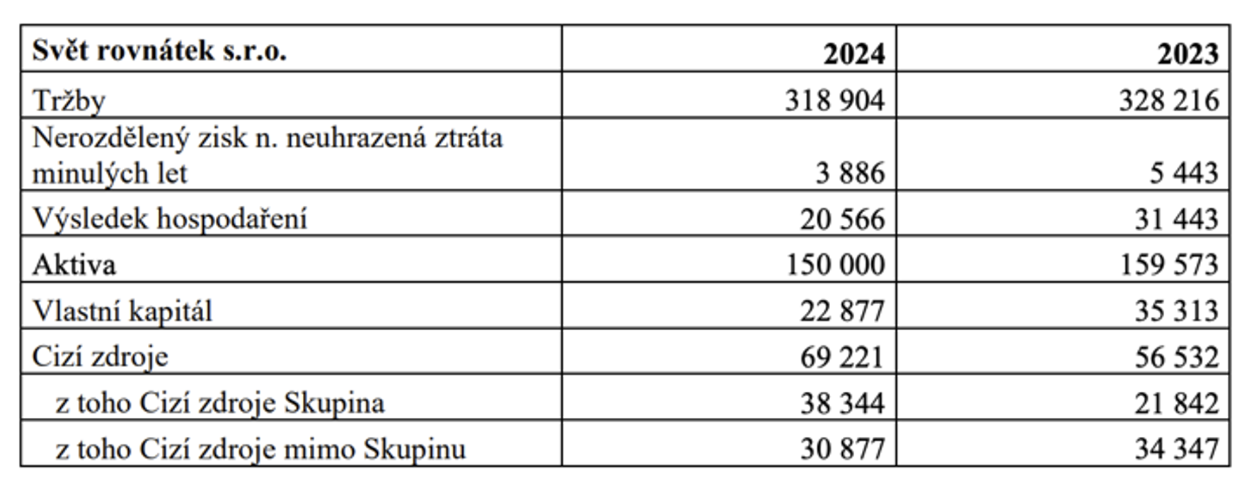 Podle této tabulky tržby skupiny sice meziročně vzrostly o 4,4 %, což potvrzuje určitou komerční trakci, nicméně celková ztráta se současně prohloubila o téměř 40 %, což signalizuje zhoršující se provozní efektivitu. Vlastní kapitál se meziročně propadl o 30 % (v absolutní hodnotě o 64 milionů korun), částečně kvůli každoročnímu účetnímu odpisu konsolidačního rozdílu (44 milionů), ale i tak zůstává výrazná reálná ztráta.