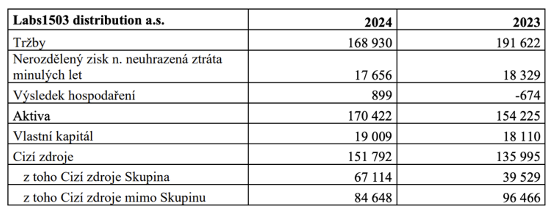 • Labs1503 distribution a.s. (100 %)
