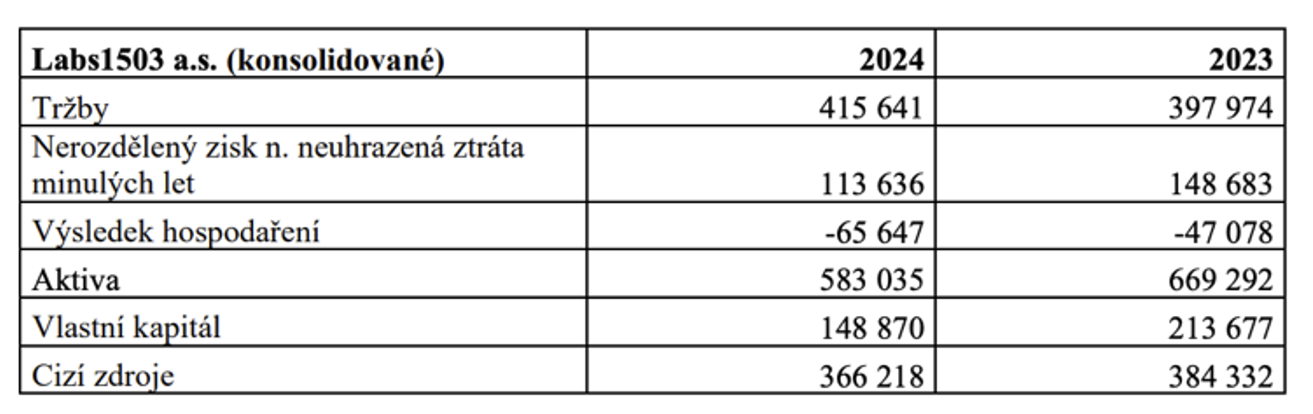Poslední plné konsolidované účetní výkazy firmy v obchodním rejstříku jsou potom jen k roku 2022 a webové stránky rovněž žádné výkazy kompletní závěrky neuvádějí. To znemožňuje hlubší analýzu. Bez dodatků v prospektu by např. ani zde nebylo jasné, že kons. ztráta skupiny vzniká z velké části kvůli odpisu konsolidačního rozdílu (44 mil ročně). To není cashflow negativní, ale zkresluje hospodářský výsledek, což nelze ze samotné tabulky vyčíst. Z pohledu investora se proto jedná o vysoce spekulativní emisi s nízkou mírou transparentnosti.