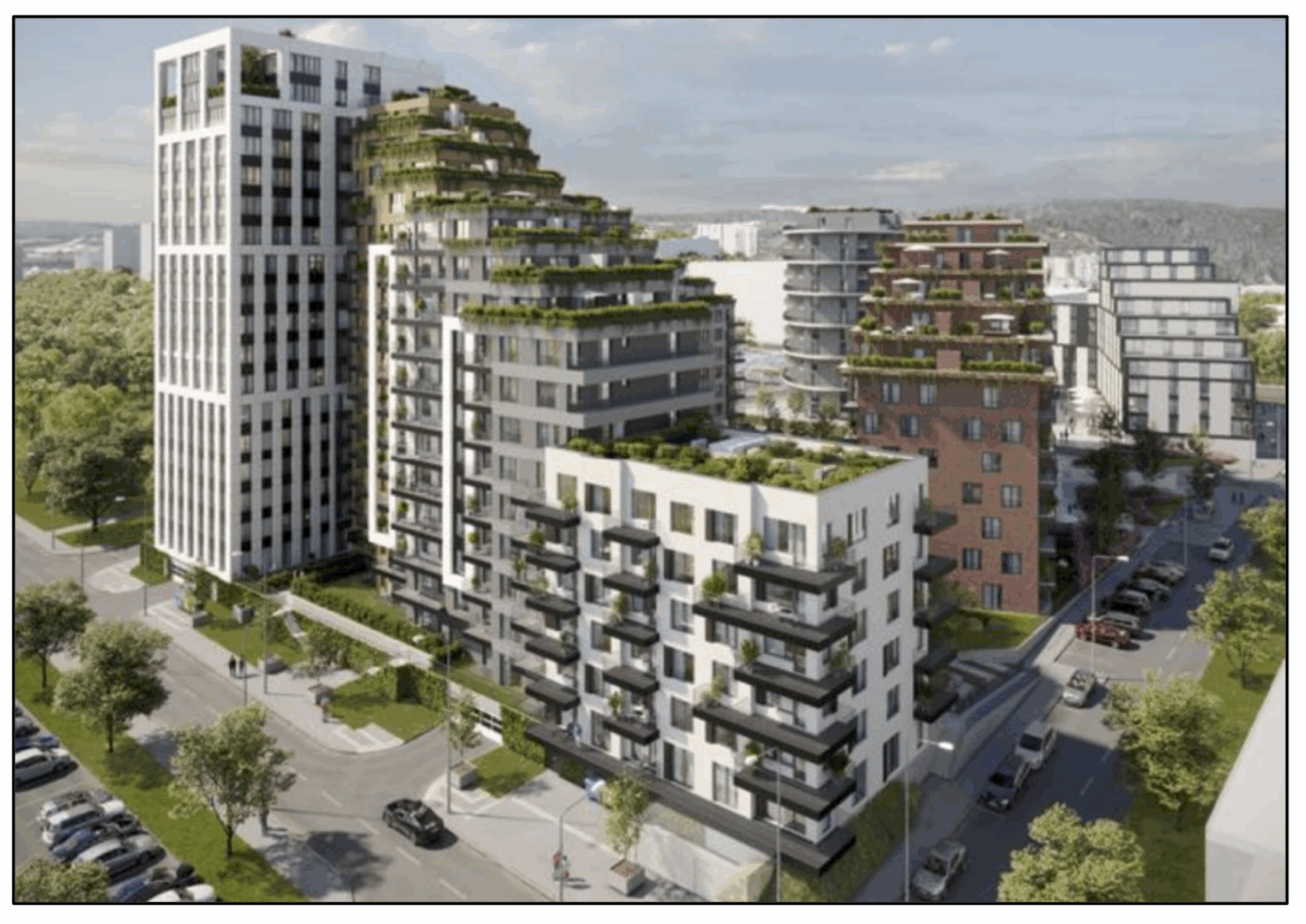 Plánem je výstavba rozsáhlé rezidenční a smíšené městské čtvrti, která má zahrnovat:
