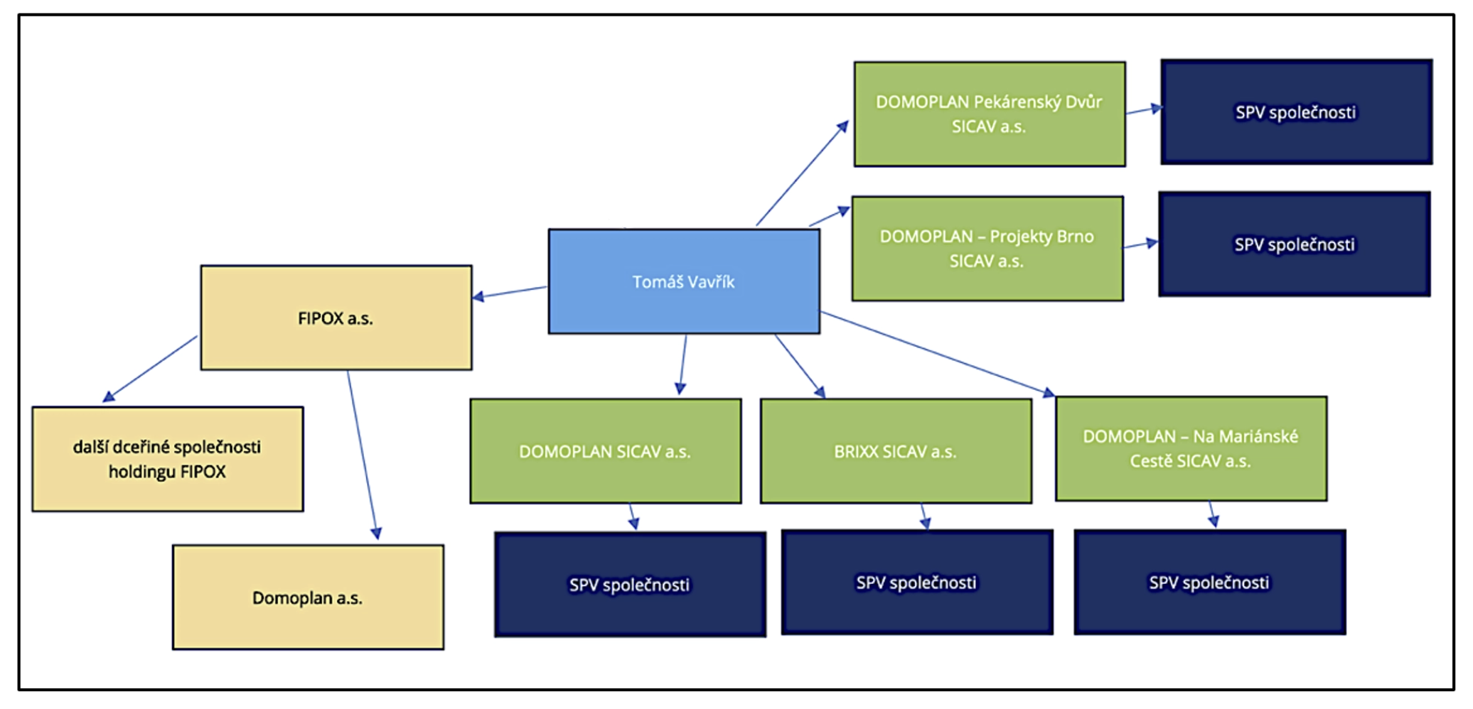V realitní činnosti své podnikání orientuje na čistý development – zdrojem zisku je podle vlastních prohlášení firmy prodej dokončených projektů, nikoliv výnosy z držby nemovitostí. Struktura celé skupiny není klasickým jedním holdingem, ale spíše sítí spřízněných entit, které Tomáš Vavřík vlastní napřímo nebo prostřednictvím FIPOXu. DOMOPLAN a.s. funguje jako provozní developer a generální dodavatel, zatímco fondy zajišťují financování projektů.