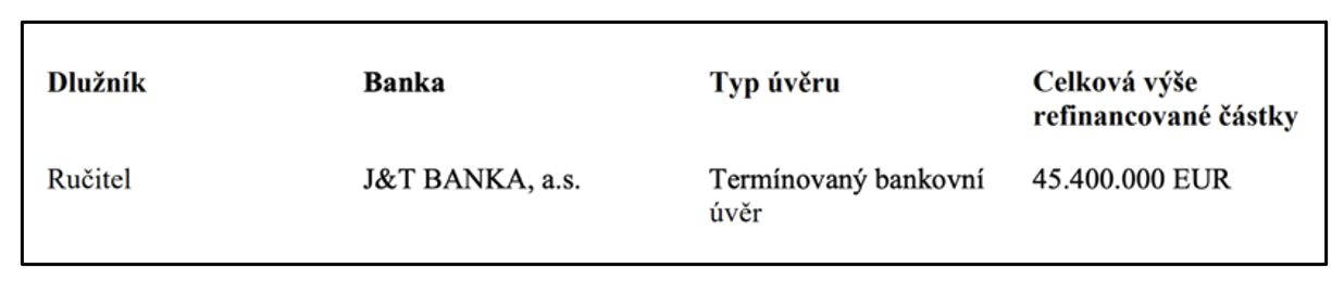 Dluhy Emitenta budou kryté kombinací zajištění, finanční záruky a podřízenosti vybraných vnitroskupinových úvěrů.