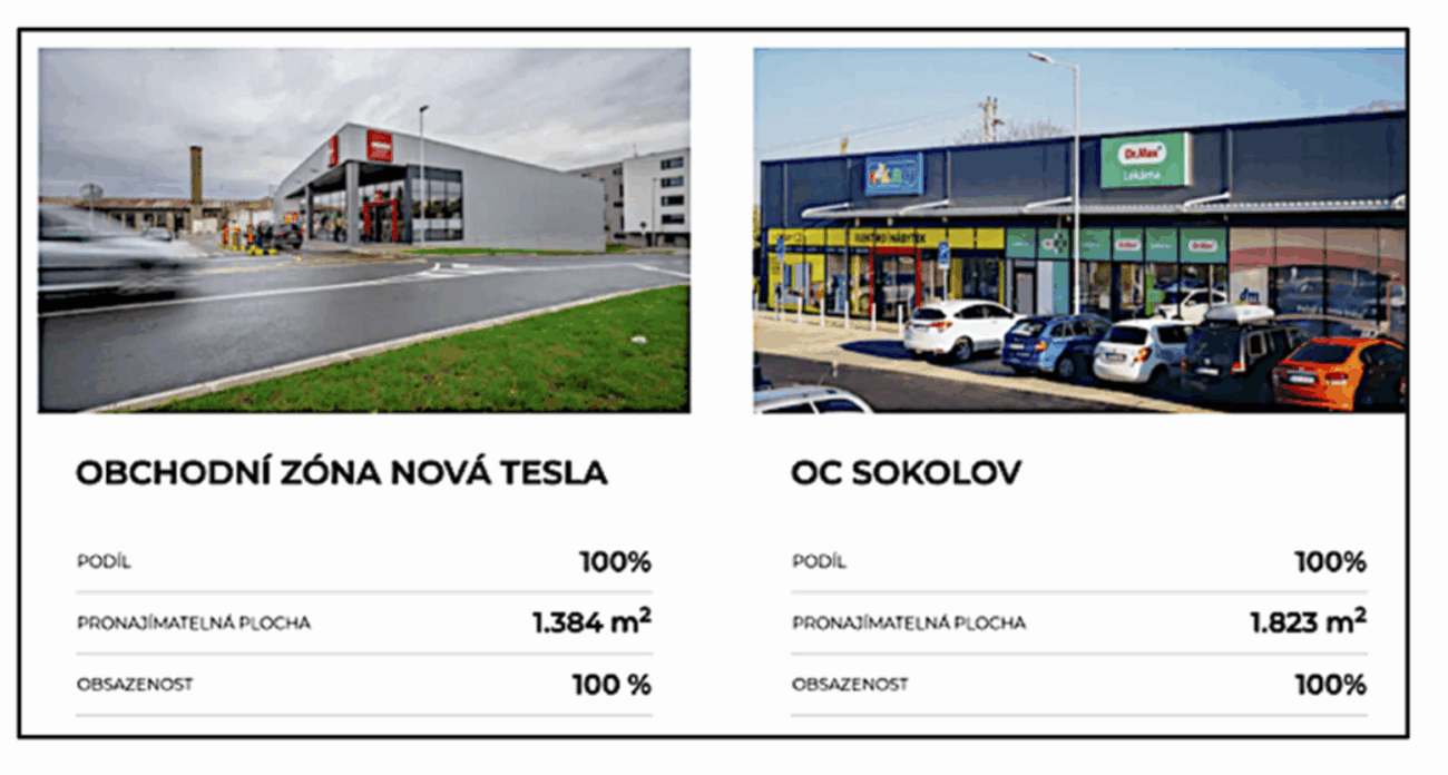 Kromě developerských projektů investovala firma i do komerčních nemovitostí, z nichž aktivní zůstávají tyto dvě: