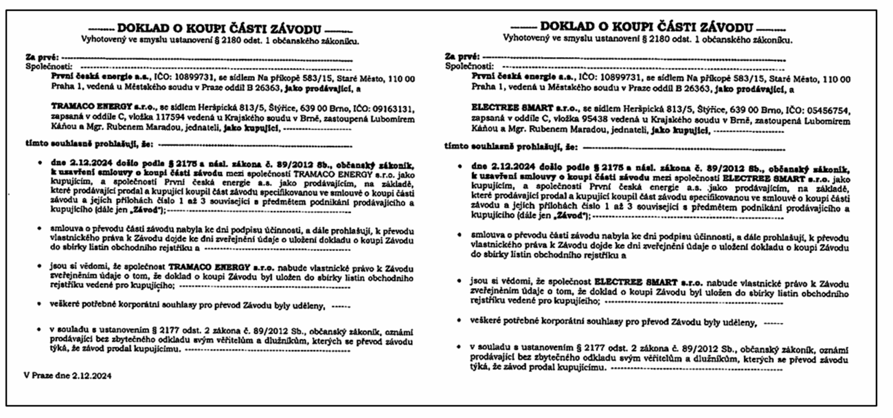 Čísla za rok 2024 jsou však i na začátku roku 2026 neznámá, firma totiž do obchodního rejstříku tyto finanční výkazy doposud nezveřejnila. V roce 2024 ale prodávala majetek, a to dvěma firmám. Podle sbírky listin se v obou případech jednalo o divestice ve formě „část závodu“. K prodejům majetku došlo v prosinci, kdy firma nejprve prodala část svého byznysu firmě TRAMACO ENERGY a další část firmě ELECTREE SMART. Kupujícími jsou firmy, které jsou v postavení mateřská-dceřiná firma a obě je kontroluje identické duo Lubomír Káňa & Ruben Marada.