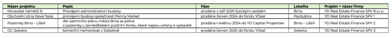 * YD Real Estate Finance SPV 8 prodána mimo skupinu v září 2025