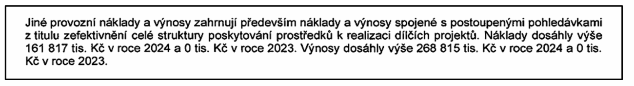 Pokles ztráty v roce 2024 však není důsledkem lepšího provozního výkonu, ale účetního vyrovnání výnosů a nákladů s jednorázovým efektem. Společnosti v roce 2024 sice významně vzrostly tržby z hospodářské činnosti (z ~2,6 tisíce EUR v roce 2023 na ~4,48 milionu EUR v roce 2024), z uvedených výnosů ale tvoří až 4,47 milionu EUR položka „ostatné výnosy z hospodárskej činnosti“, což obvykle značí účetní operaci mimo běžnou provozní činnost. Takto prudký nárůst výnosů tedy není projevem organického růstu či rozšíření provozu, ale výsledkem jednorázové účetní operace, jejímž výsledkem je optické snížení ztráty bez skutečného zlepšení provozní efektivity.