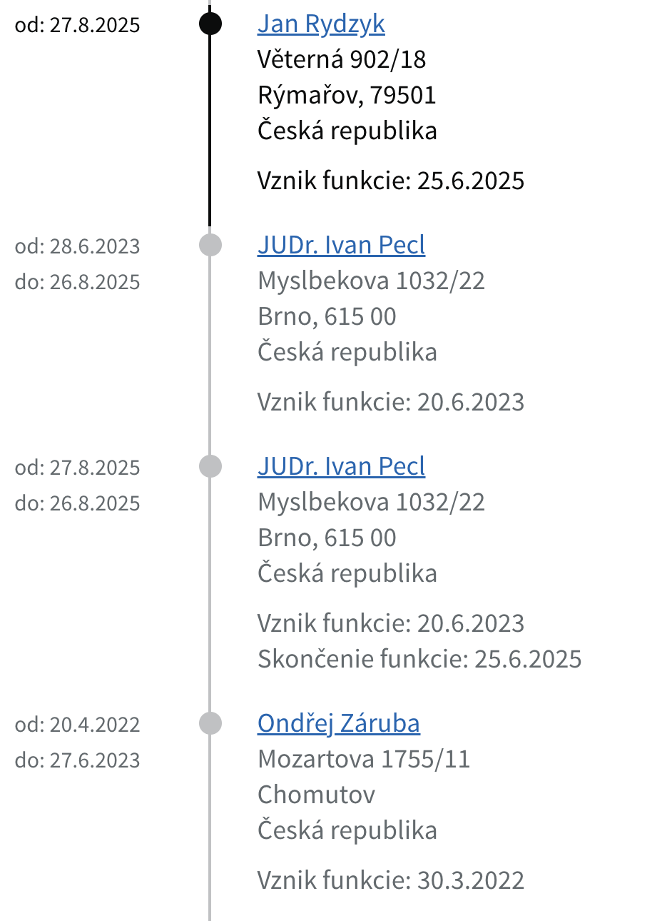 Budova administrativní firmy Na Poříčí 17, tedy činžovní a komerční dům, je navíc předmětem zástavy, přičemž v listopadu 2025 vyvolal tento zajištěný věřitel její nedobrovolnou dražbu z důvodu neplacení dluhu. To potvrzuje, že likviditní napětí ve skupině již překročilo hranici běžného provozního rizika a přerostlo v otevřený platební problém.