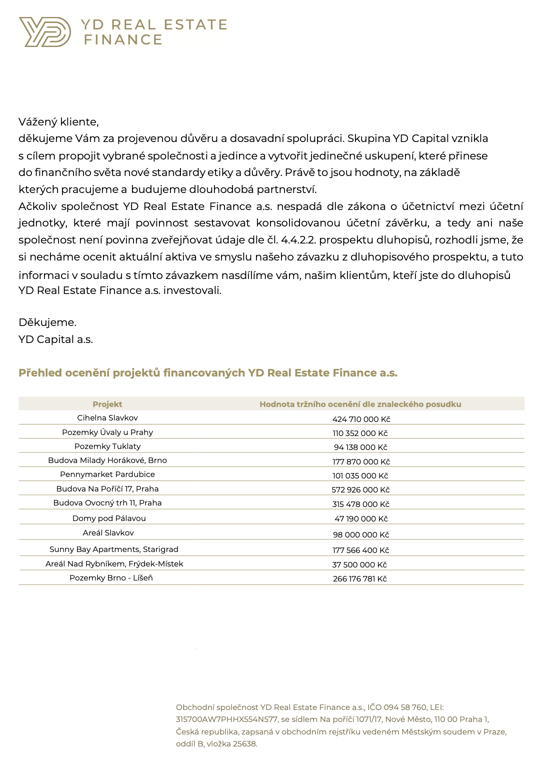 - YD Real Estate Finance a.s. (dále také YD REF)